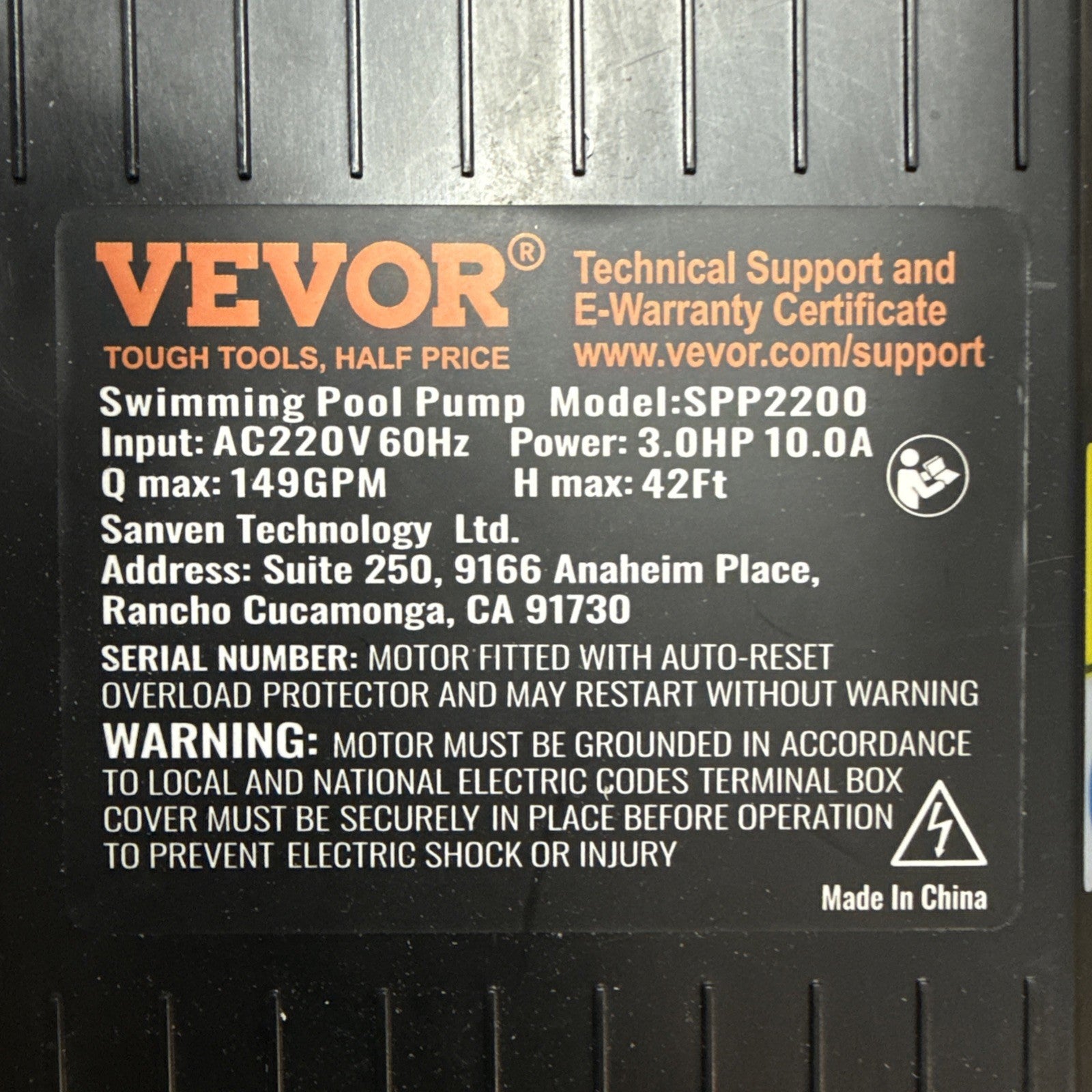 3 HP Above Ground Swimming Pool Pump Single Speed 149 GPM 3450 RPM 220V