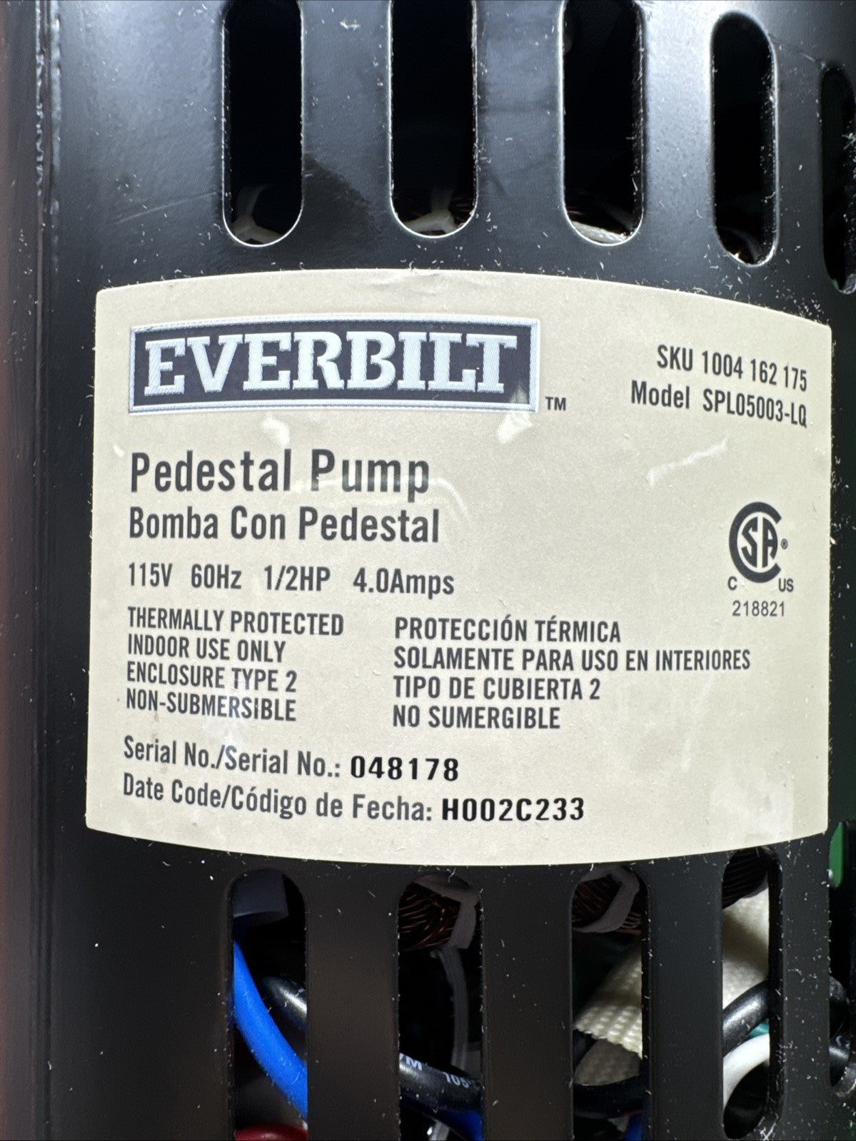 Everbilt Pedestal Sump Pump Stainless Steel and Cast Iron 1/2 HP SPL05003-LQ