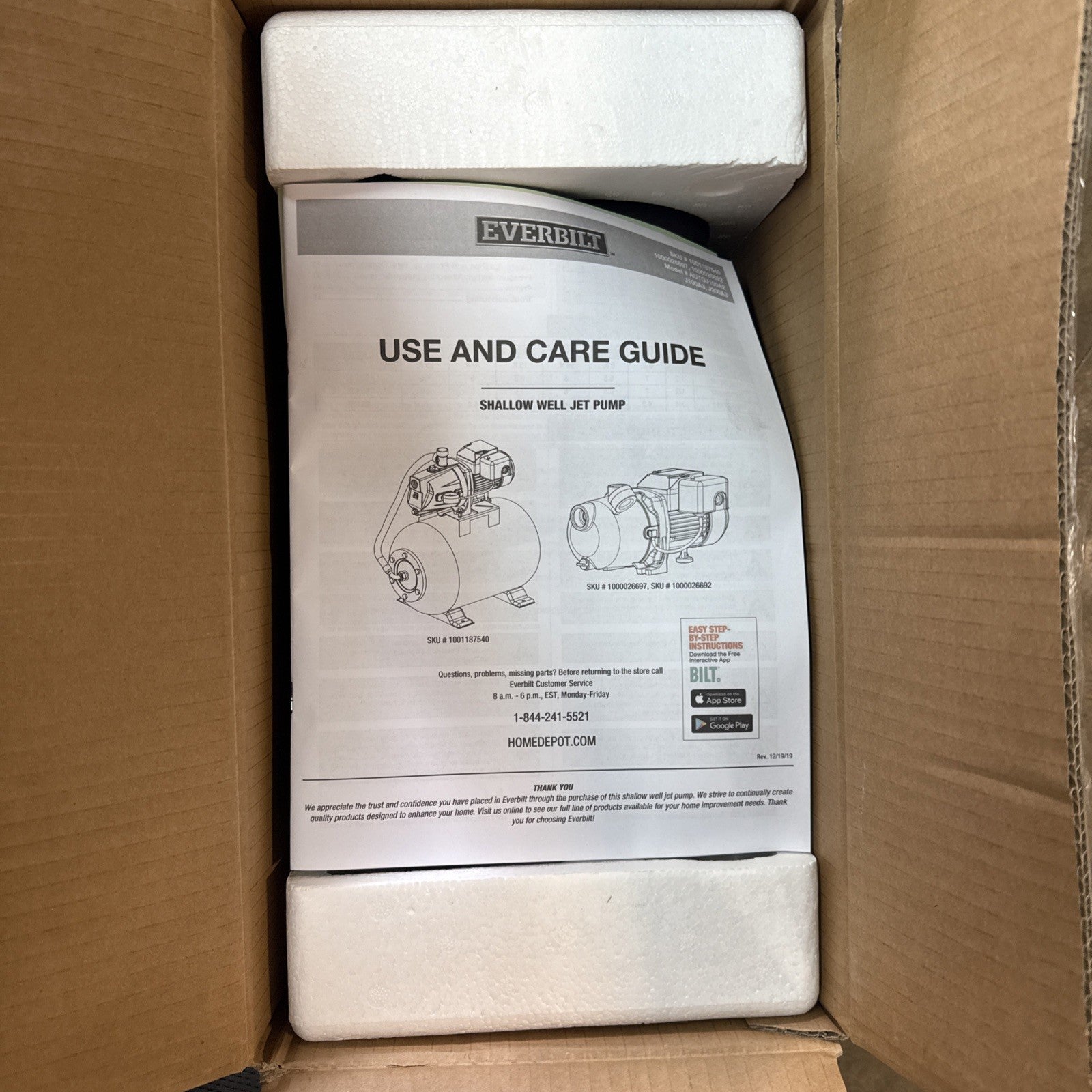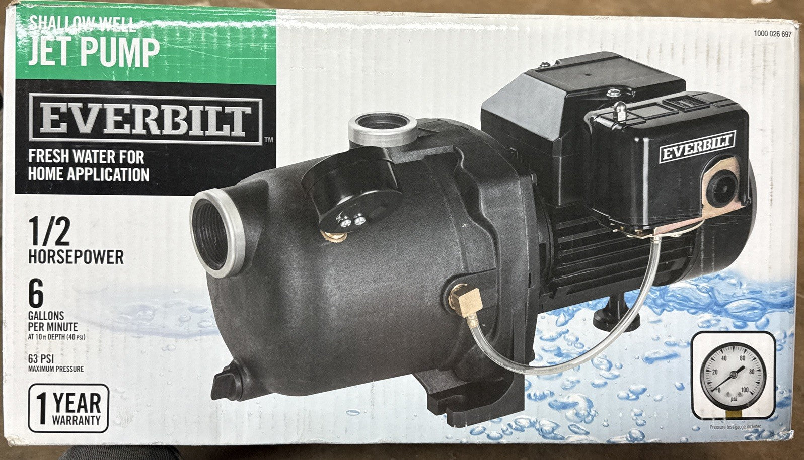 Everbilt Shallow Well Jet Pump Fresh Water for Home 1/2 hp 6 gal/min NEW OB