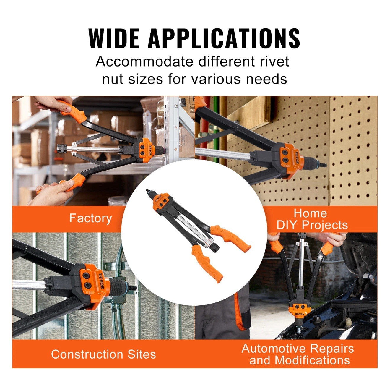 Versatile for Any Job and Surface: From workspaces to home projects, our rivet nut kit is suitable for DIY, manufacturing, and automotive repairs. It can be used to fix and rivet aluminum, steel, copper, and more. Say hello to high efficiency and bid farewell to limitations.